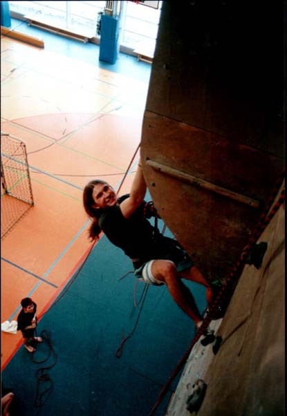 Ich am Überhang in der Falkenburg. Nancy sichert.