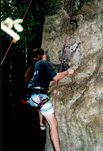 Erste Kletterversuche am richtigen Felsen im Thüringer Wald.