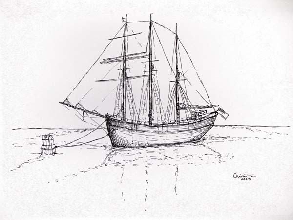 Ein Segelschiff lag im Hafen angetäut.