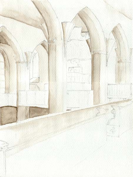 Aquarell - Blick von der Empore der Jacobikirche in Sangerhausen