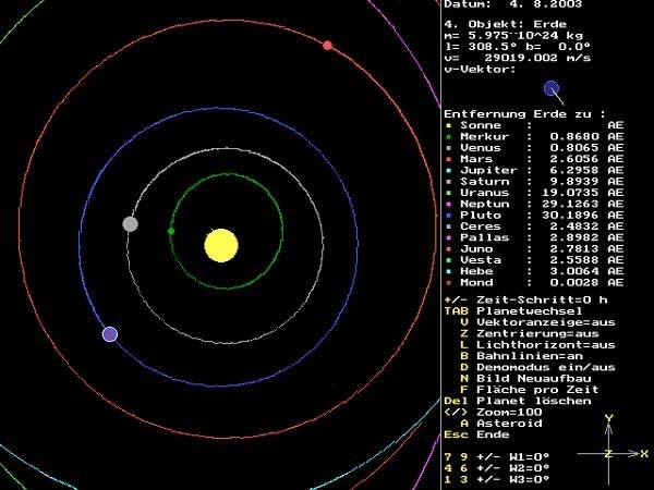 Hier sieht man Merkur, Venus, Erde und Mars auf ihren Bahnen.