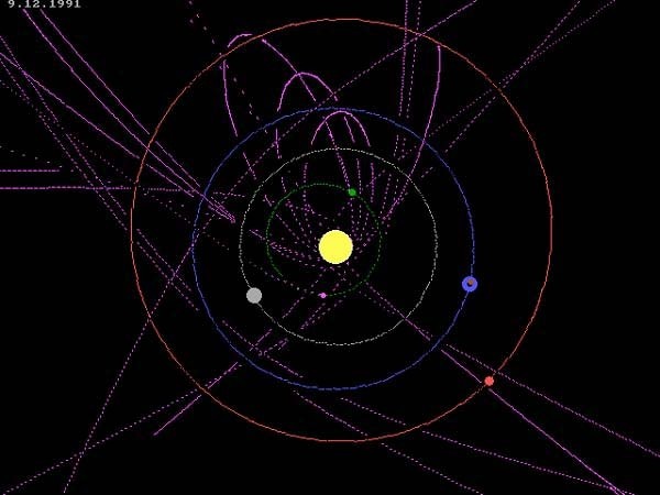 Im Bildschirmschoner werden wir mit Asteroiden beschossen. Manche bleiben auch im Orbit.