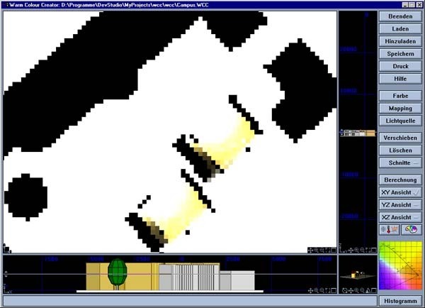 Die Uni-Cubes, welche innen nur durch die Lichtrefexion des Hauptgebäudes hell sind.