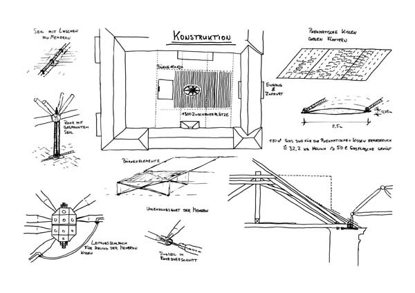 Hier sehen wir einige Konstruktionsskizzen der Überdachung.