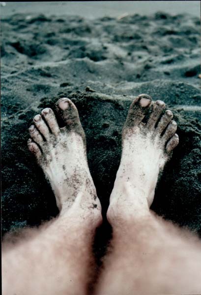 Mein Füße im schwarzen Strand.